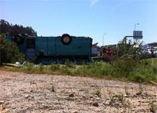 Após o embate, a carga deslocou-se para a frente e esmagou a cabina do camião, transformando--a numa amálgama de chapa. O condutor ficou encarcerado e os destroços incendiaram-se de imediato. As chamas provocaram danos no viaduto da estrada que liga Maceira (Leiria) à Marinha Grande, que ficou intransitável até à conclusão de uma vistoria técnica.