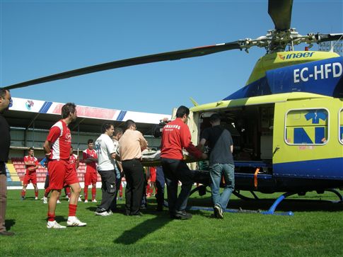 Quando os jogadores chegaram ao estádio Adelino Ribeiro Novo, encontraram o helicóptero do INEM em pleno relvado.