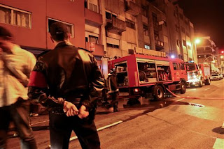 As chamas deflagraram pelas 20.40 horas na garagem do número 115 da Rua da Constituição, levando os bombeiros a retirarem, através de uma autoescada, as dez pessoas do imóvel.