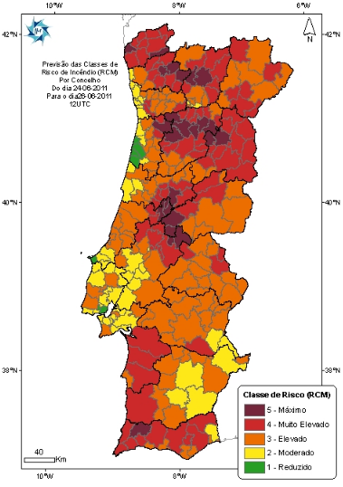 Em análise mais pormenorizada, os técnicos do instituto consideram que os concelhos que correm maior risco tendo em conta as condições climatéricas registadas e previstas são: