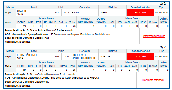 Durante os primeiros 15 dias do mês de agosto, a Autoridade Nacional de Proteção Civil registou 2419 incêndios florestais, o que corresponde a uma média de 161 por dia. A passada sexta-feira foi o dia mais negro da chamada fase Charlie (quando há mais riscos).