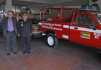 “As quatro viaturas serão encaminhadas para São Tomé e no dia 18 de Outubro chegarão a Portugal os elementos do distrito de Mé-Zóchi que vêm fazer um curso inicial de bombeiros, no quartel das Caldas. No final do curso irão para São Tomé com três bombeiros e ainda o comandante e o presidente da associação dos bombeiros das Caldas, que levam as viaturas até ao distrito de Mé-Zóchi”.
