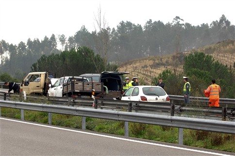 O acidente resultou do despiste de uma viatura ligeira e do choque, nesta, de outros três ligeiros de passageiros que seguiam imediatamente atrás.