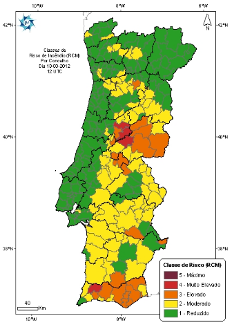 Desde a meia-noite, a Autoridade Nacional de Protecção Civil já registou 13 fogos Foto@Risco de Incêndio para hoje do IM |