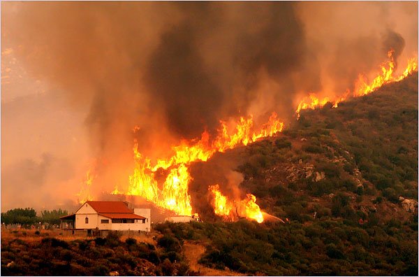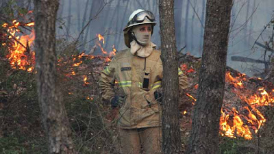 A mudança súbita do vento pôs em perigo a vida daquela equipa de bombeiros que, num rasgo de lucidez conseguiu fugir, atravessando as chamas.