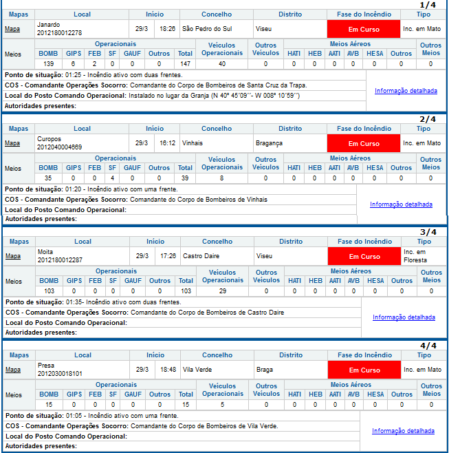 A Proteção Civil apenas coloca em destaque na sua página - com a disponibilização de detalhes - os incêndios com mais tempo ou maior mobilização de meios.