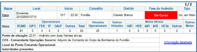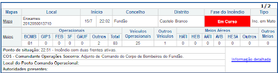 Já depois de desmobilizarem os meios aéreos, dois aviões bombeiros médios anfíbios, por falta de luz natural, mantinham-se no combate um total de 158 elementos, apoiados por 41 viaturas, com o posto de comando instalado em Casal das Lapas.