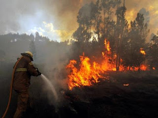 A essa hora, o incêndio florestal avançava três direcções que totalizavam seis quilómetros de frente.