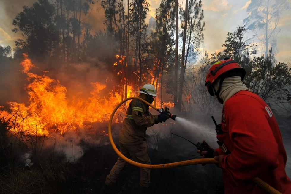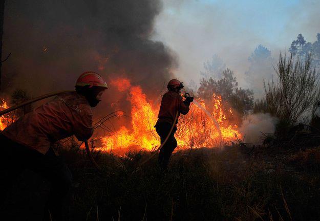 A essa hora, o incêndio florestal avançava três direções que totalizavam seis quilómetros de frente.