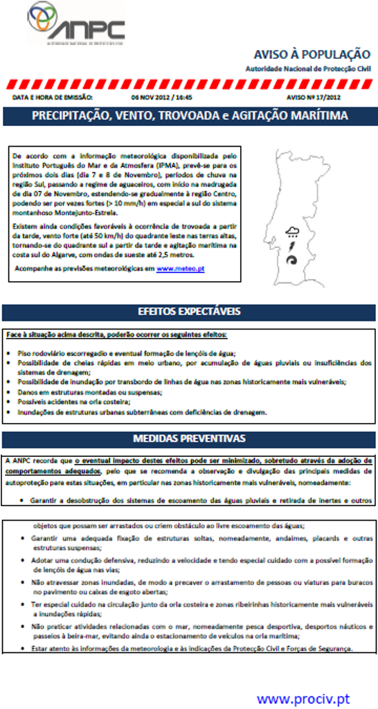 O aviso adianta que estes eventuais impactos podem ser minimizados, recomendando à população que observe as medidas de autoproteção para estas situações, em particular «nas zonas historicamente mais vulneráveis».