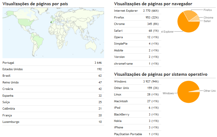 - 1859 Visualizações do Bombeiros em Formação, sendo 1403 de Portugal, 287 de Brasil, 95 de EUA, e as restantes de mais alguns países.