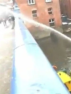 Tal foi ocaso de um grupo de adolescentes que numa ponte, em Leeds, Norte do Reino Unido, decidiu atirar bolas de neve a um bombeiro que trabalhava num barco.