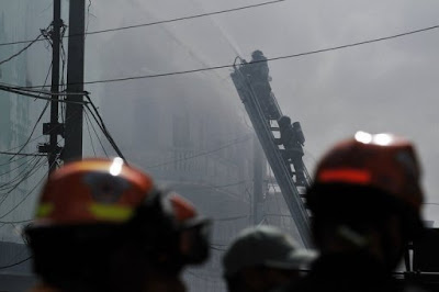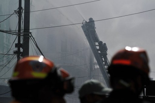 A densa nuvem está provocando irritação nos olhos e vias respiratórias e as autoridades sanitárias pediram à população vizinha que cubra o rosto com lenços molhados e mantenham suas moradias fechadas.