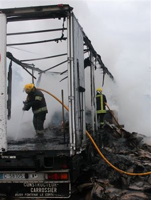 Os Bombeiros da Amadora compareceram com tres viaturas (VUCI o1, VTTU 01 e ABSC 08) tendo conseguido salvar a carga da viatura.