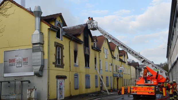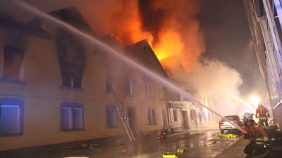 Centenas de bombeiros combateram o fogo que deflagrou hoje de madrugada na cidade de Backnang perto de Estugarda.